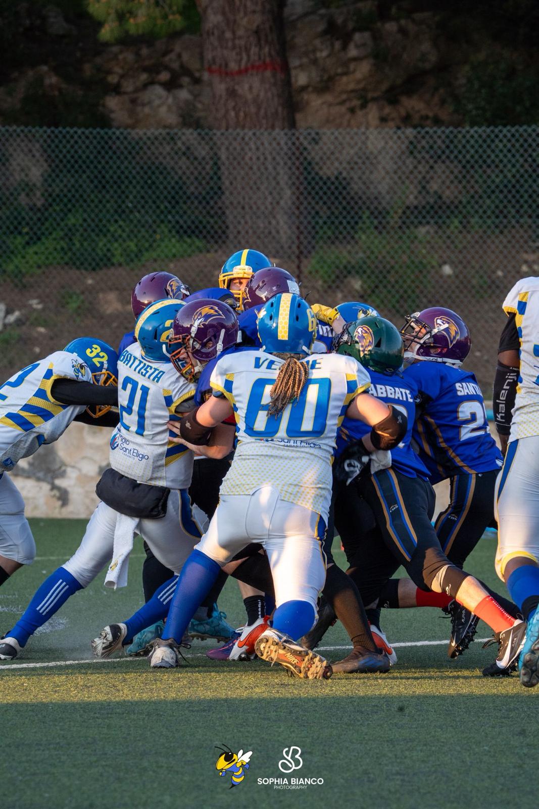 Vittoria di carattere, vittoria di squadra. Le Vespe chiudono la regular season imponendosi 20-13 sui Falcons Caserta al termine di una sfida intensa, fisica e combattuta fino all'ultimo possesso. Un successo che va oltre il punteggio finale: oltre ai due punti conquistati sul campo, arriva la certezza del primo posto in classifica, risultato che certifica la qualità e la continuità mostrate durante tutto il campionato.